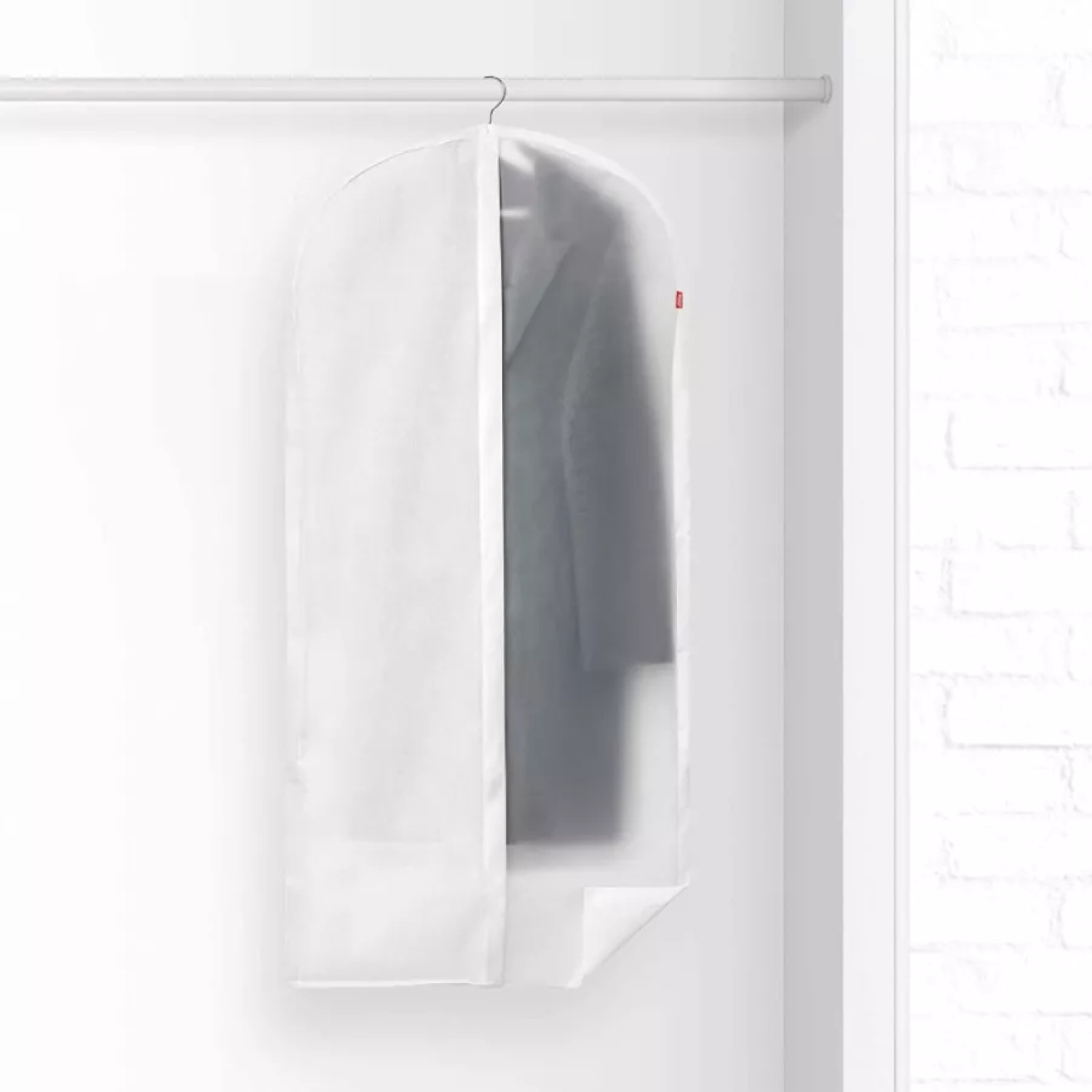 Сумка для одежды Rayen изготовлена ​​из прочного материала с гладкой молнией, белого цвета с эффектом прозрачности, чтобы было видно, что внутри. Его можно использовать не только дома, но и во время путешествий.