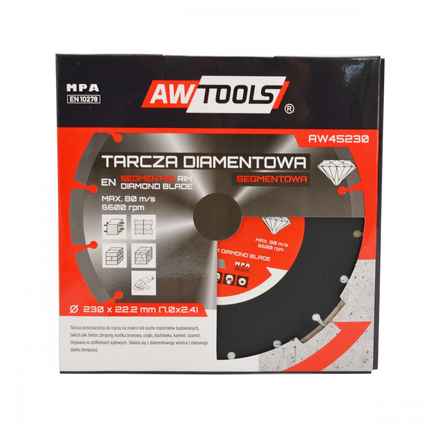 Segmentēta dimanta zāģa asmens 230 x 22.2mm, oglekļa tērauds, ilgmūžīgs, AW45230, AWTOOLS