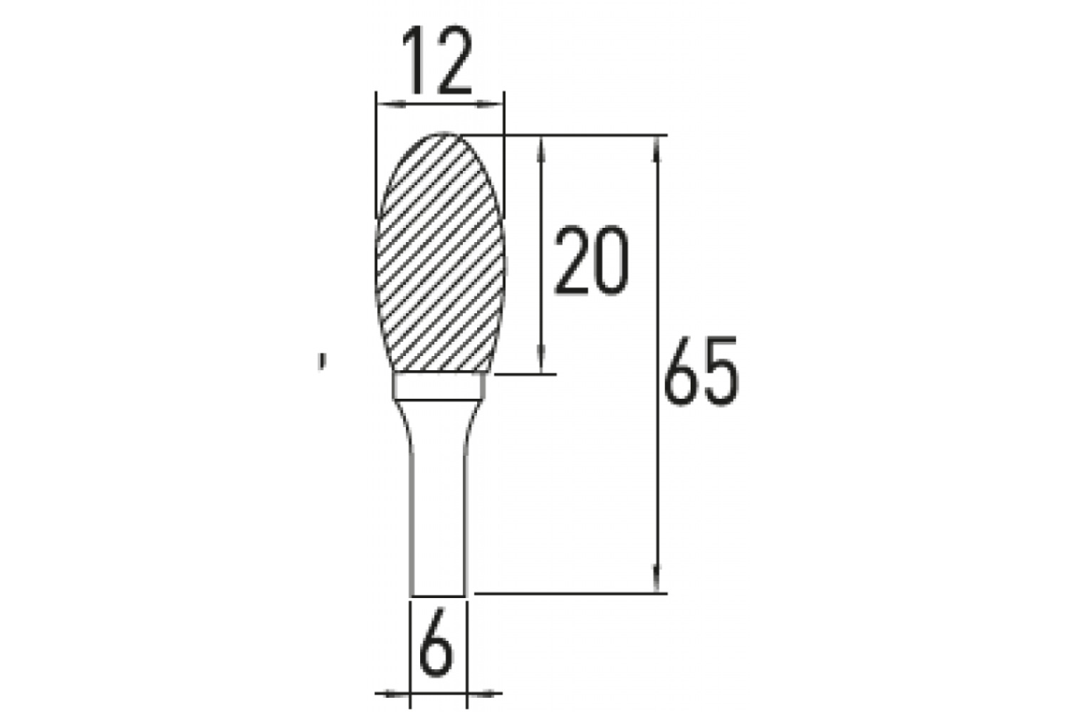 Ovāla E tipa frēze, HOGERT, HT6D592, 12×20 mm, volframa karbīds, 6 mm mandrel