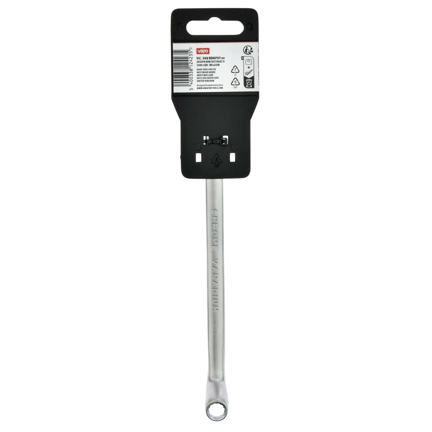 Двойной кольцевой ключ KREATOR длиной 130 мм изготовлен из высококачественного хром-ванадия, что обеспечивает эффективную передачу силы благодаря конструкции с наклонным кольцом. Этот инструмент идеально подходит для легкого доступа к различным размерам гаек и болтов.