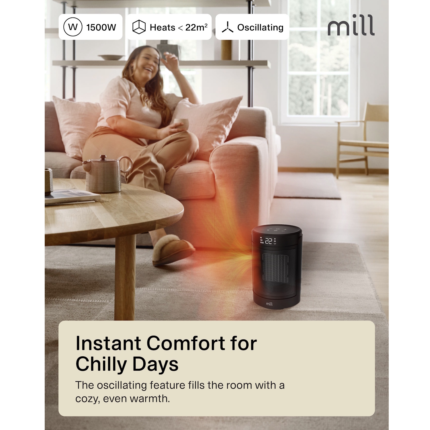 Керамический вентиляторный обогреватель мощностью 1500 Вт для помещений до 22 m² переносной черный FH1500BLACK Mill
