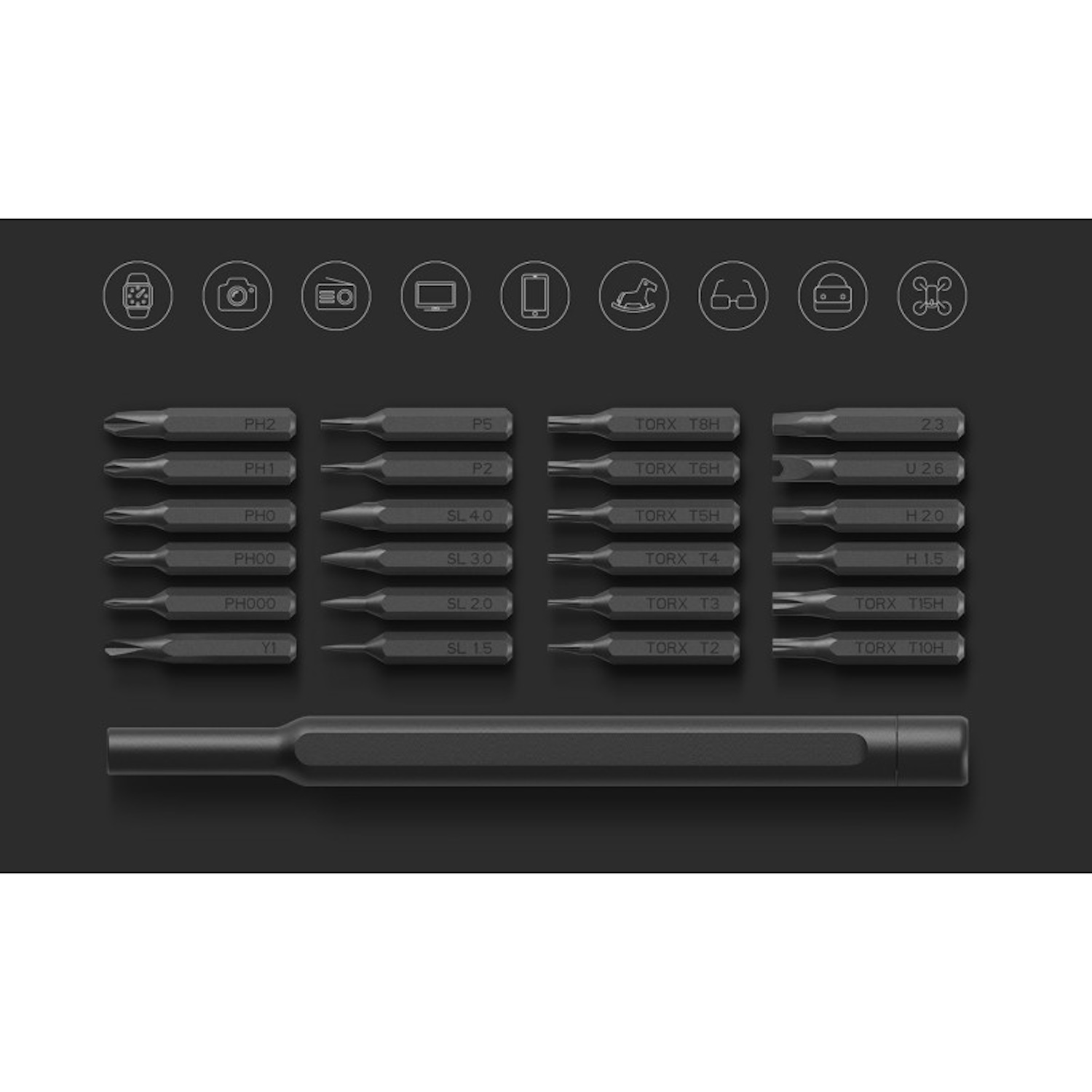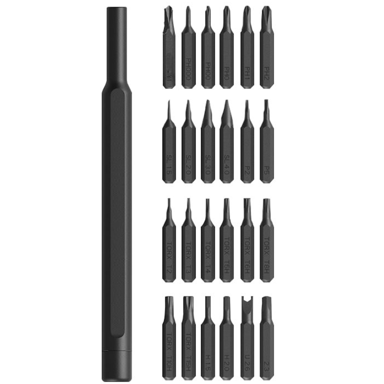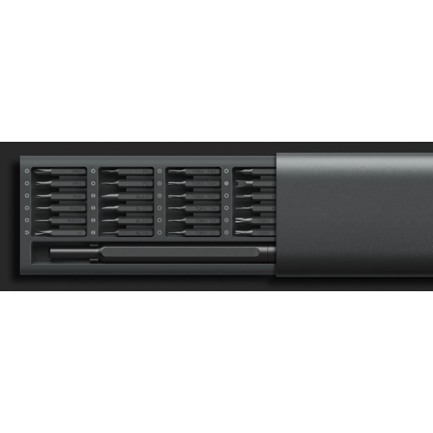 • В комплект входят 24 высококачественные стальные насадки, охватывающие практически все распространённые стандарты винтов в электронике — от PH и SL до Torx, Tri-wing и Hex.