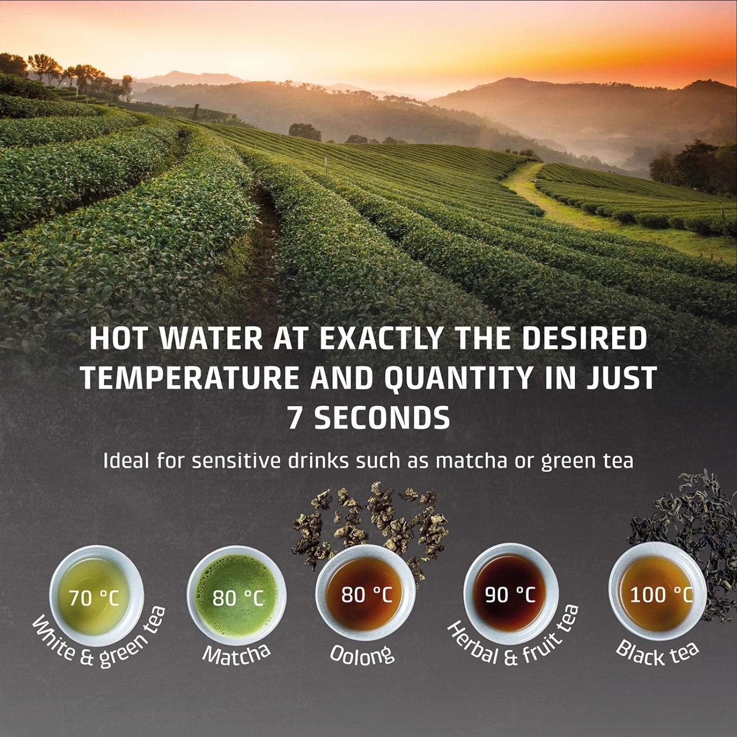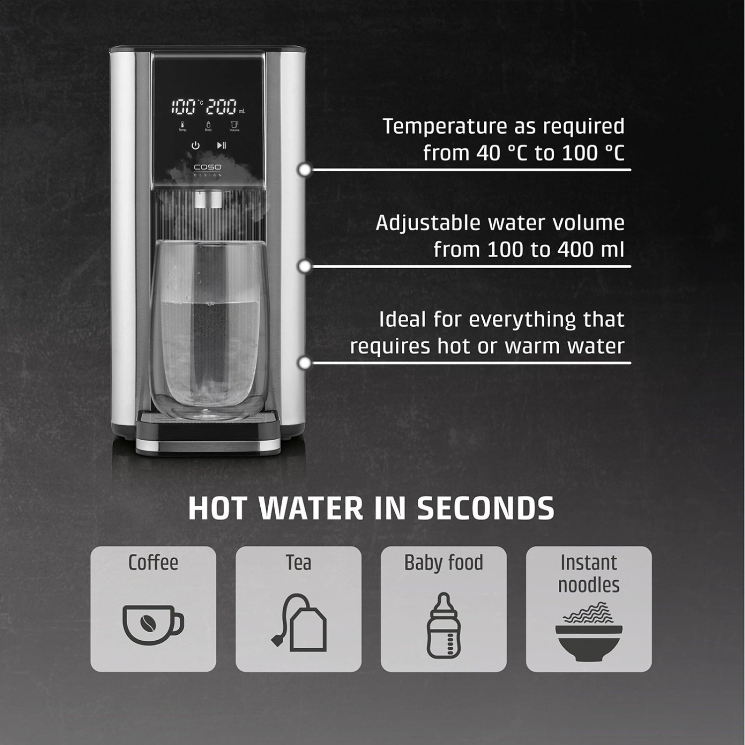 13 температурных режимов (40–100°C) с шагом 5°C для точного приготовления воды