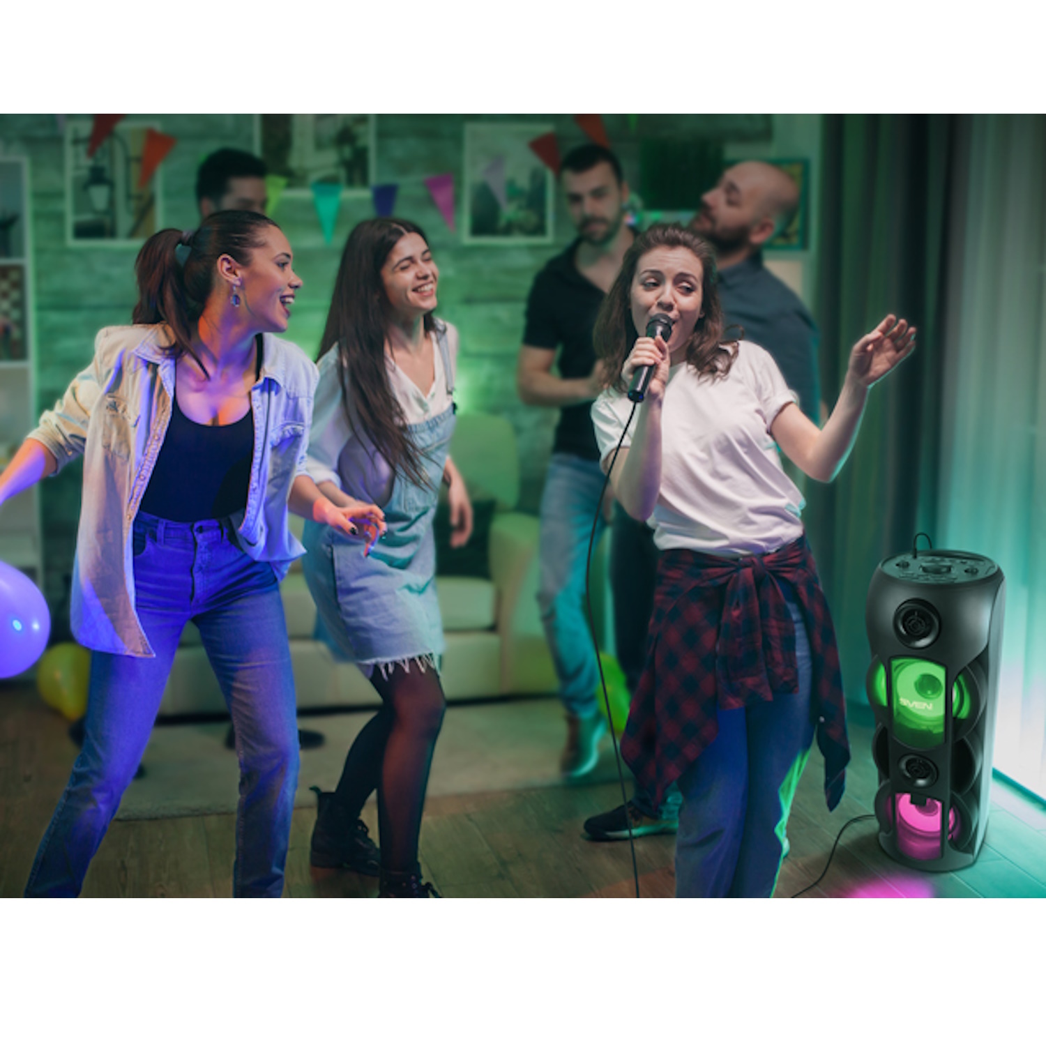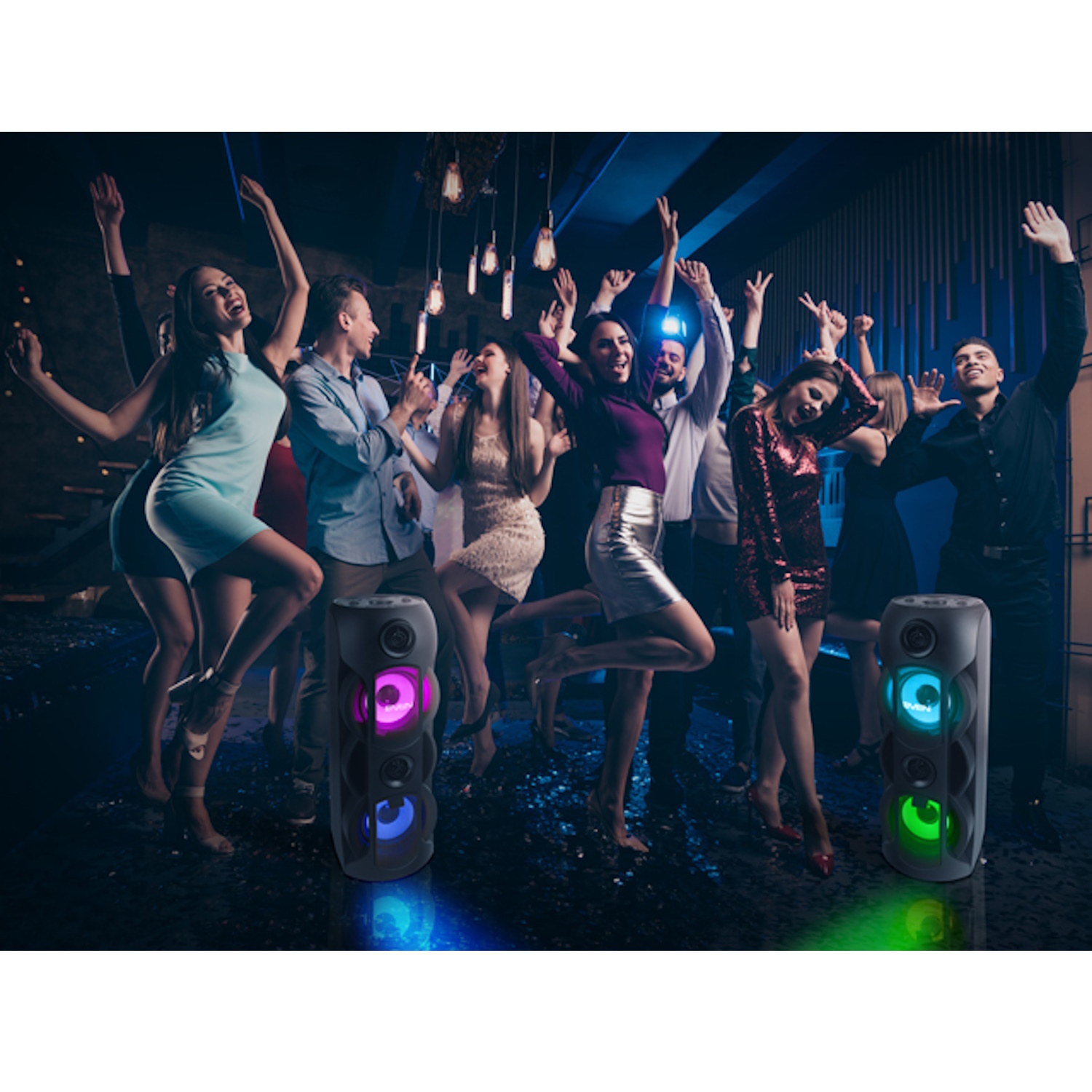 SVEN PS-720 — это мощная портативная Bluetooth-акустическая система с выходной мощностью 80 Вт RMS, поддержкой TWS-соединения и впечатляющей RGB-подсветкой. Устройство обеспечивает мощный, насыщенный звук и яркий визуальный эффект, создавая настоящую атмосферу вечеринки. Идеальное решение для развлечений дома, на мероприятиях и во время активного отдыха.
