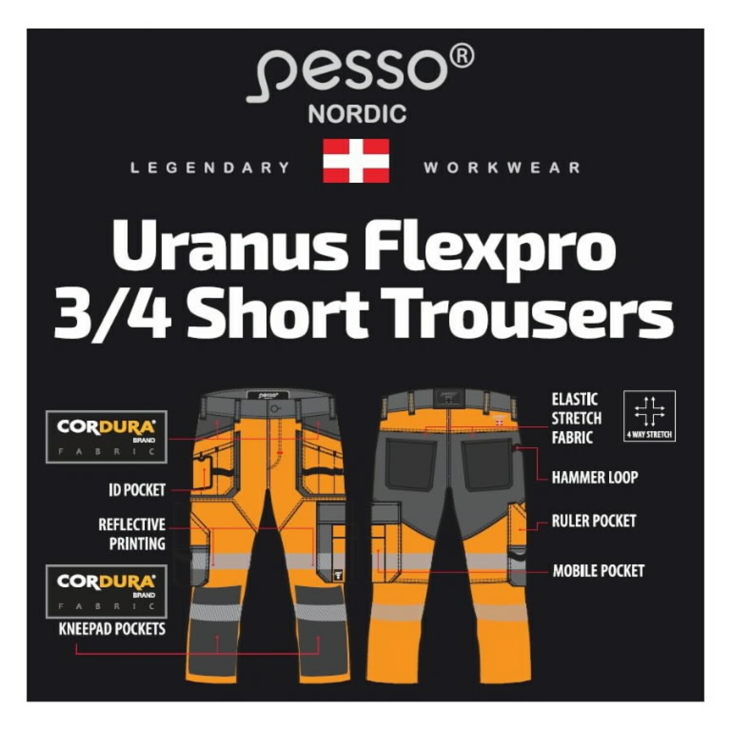 Светоотражающие 3/4 шорты PESSO модели KB135OR_C58 предназначены для обеспечения высокой видимости и комфорта при работе.