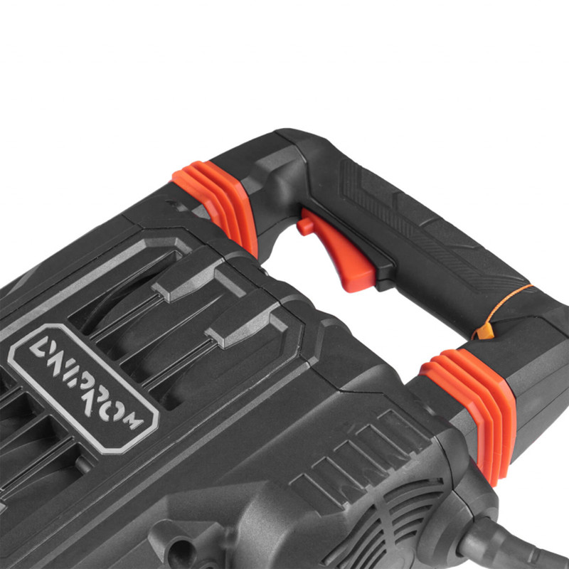 | КОМФОРТНАЯ РАБОТА Внутренняя ширина ручки составляет 134 мм, что дает возможность комфортно держать инструмент двумя руками одновременно. Дополнительная ручка, которая может вращаться на 360 градусов, позволяет точно контролировать работу отбойного молотка. |