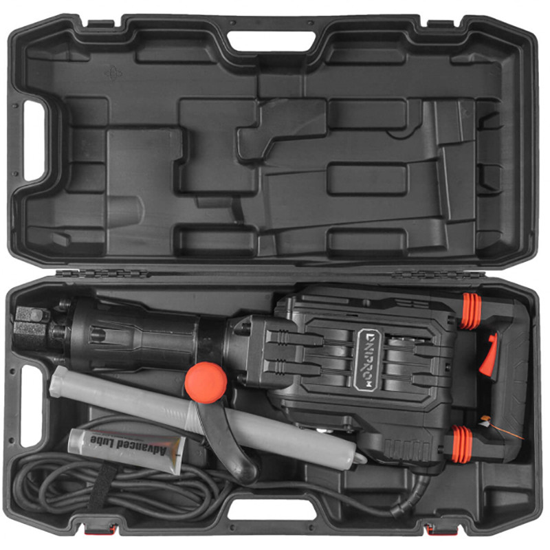 | РАСПАКУЙТЕ И РАБОТАЙТЕ В комплект вместе с отбойным молотком входит все необходимое для начала работы. Инструмент и детали находятся в кейсе из ударопрочного пластика с колесиками, что облегчает транспортировку. |