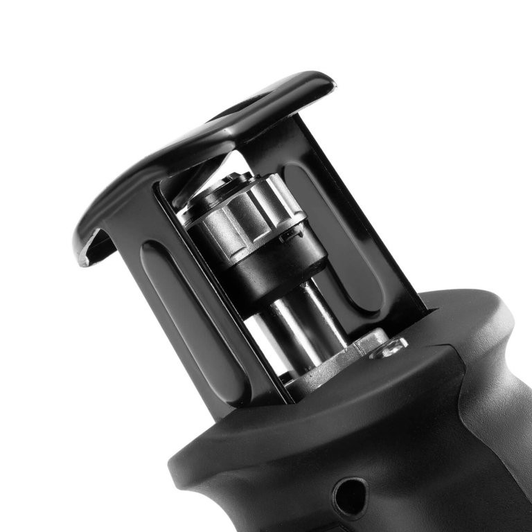 Система быстрой замены расходника позволяет без лишних усилий вынимать и вставлять в инструмент пилки. Это экономит время при продолжительном использовании сабельной пилы RS-12, а также полезно в случаях, когда требуется частая замена расходника.